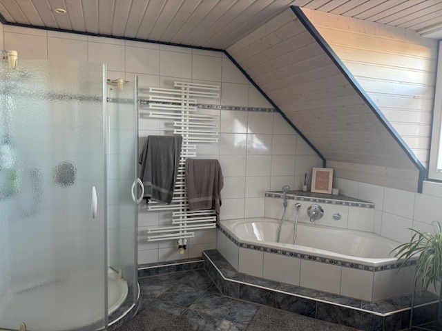 Die Immobilie verfügt über fünf Schlaf-/Arbeitszimmer, drei Badezimmer und eine Dachgeschossfläche von ca.25 m². Die Zentralheizung sorgt für wohlige Wärme in allen Räumen. Vom Wohnzimmer aus gelangt man auf die Terrasse, die zum gemütlichen Verweilen im Freien einlädt. Die insgesamt sechs Zimmer bieten ausreichend Platz für eine Familie und ermöglichen vielfältige Gestaltungsmöglichkeiten.