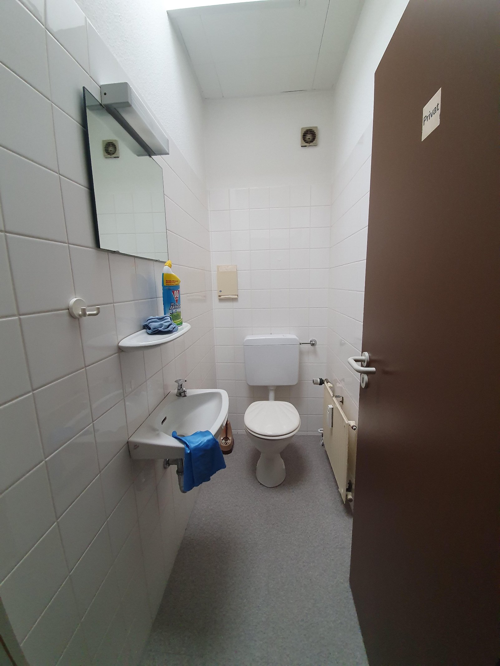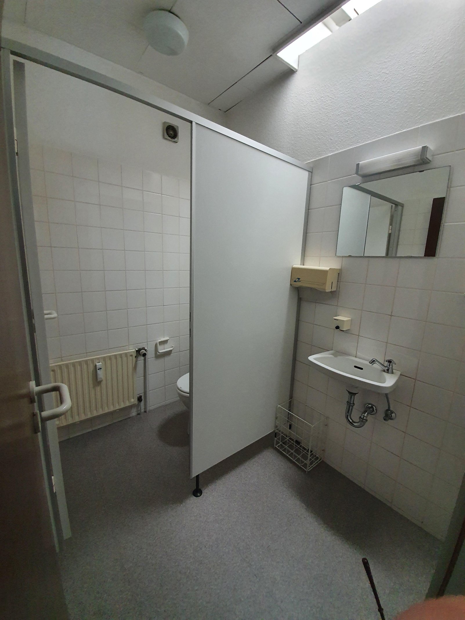 Diese Gewerbefläche befindet sich in einem zweistöckigen Gebäude mit einer zentralen Heizungsanlage.